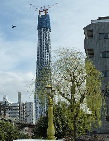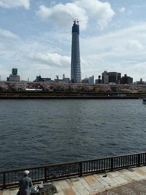 わたしは、建設途中のスカイツリーに興味はなく、隅田川沿いの花見に行ったのですが、桜よりもスカイツリーにカメラを向けている人がたくさんいました。ならばと、私もご相伴。結局、桜より多く撮りました。