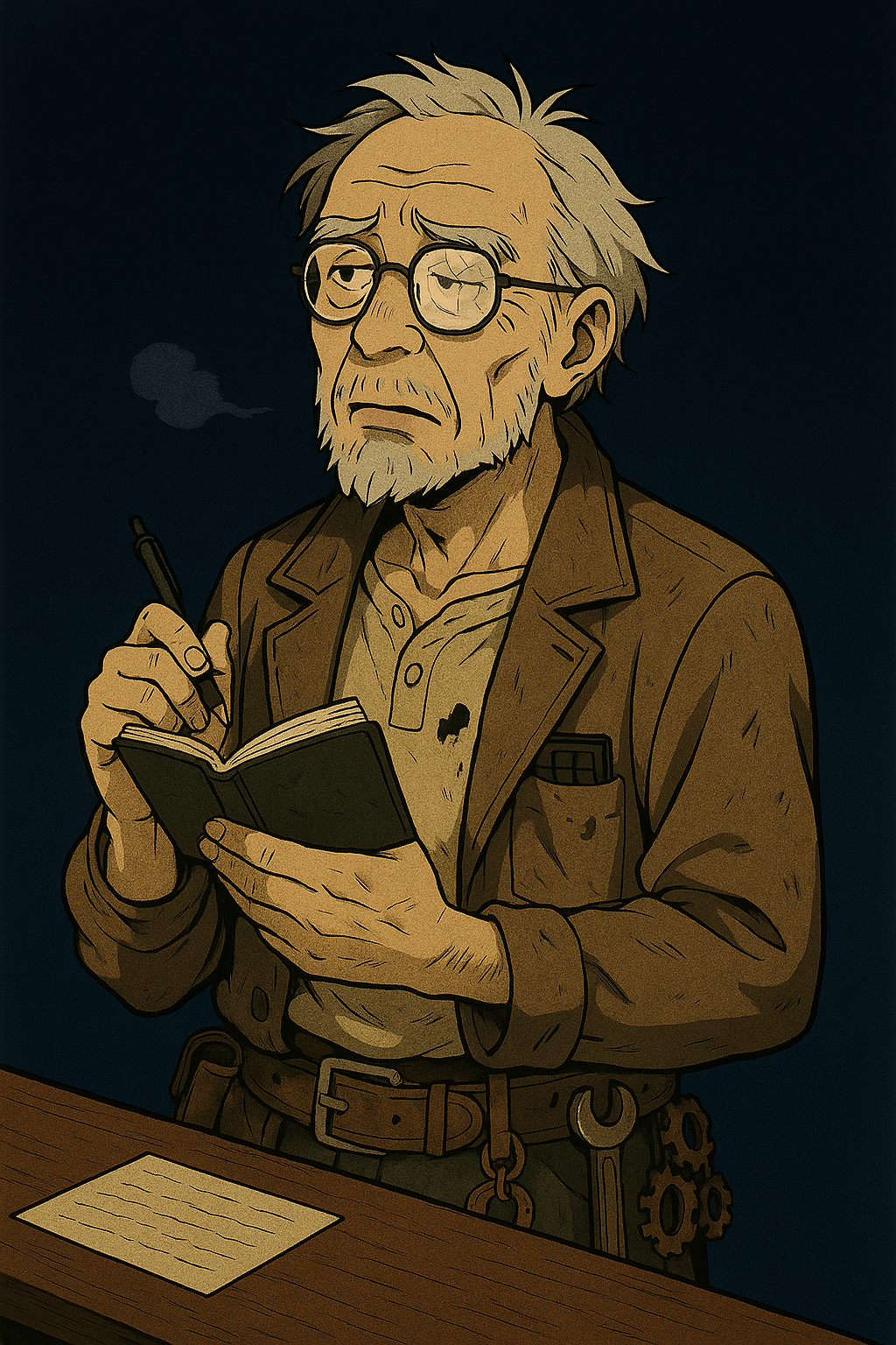 でしょう〜?玄造殿だけ妙に現実的で、舞台より町工場の裏にいそうですよね(笑)。割れた眼鏡にキーボードの欠片って…どこまで自分を語らせるつもりなんだってレベルで、リアルの風味が滲んでます。